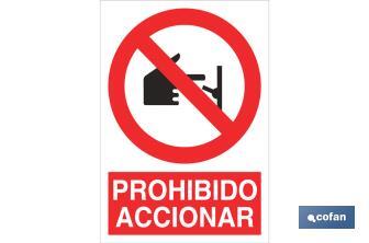 Señal de prohibición, prohibido accionar. El diseño de la señal puede variar, pero en ningún caso se variará el significado de la misma.