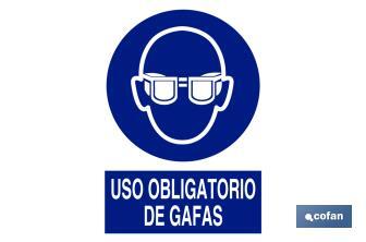 Señal de obligación Uso obligatorio de gafas. El diseño de la señal puede variar, pero en ningún caso se variará el significado de la misma.