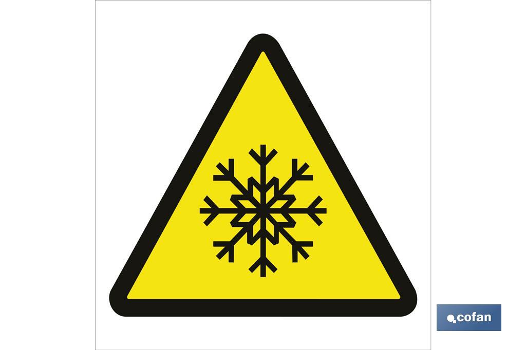 Señal de advertencia solo imagen, peligro frío. El diseño de la señal puede variar, pero en ningún caso se variará el significado de la misma.