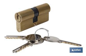Cilindros Europeo llaves iguales, color Latón. Fabricados en acero y latón. Saliente en acero autolubrificante. Muelles de bronce fosforoso. 5 pitones de latón. 3 llaves. Leva Larga.