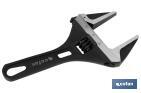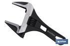 This stubby wide jaw adjustable wrench is 30% lighter than a standard wrench. It has two extra-flat jaws that allow the tool to be used in very limited areas when working. It is made from high quality chrome-vanadium steel for greater strength and durability. Its chrome-plated surface protects it from rust and makes it resistant to corrosion. Available in different lengths and wide openings. The jaw can be opened by the central thumb screw in a precise way. It has a metric scale on both sides for fast adjustments. This adjustable wrench is used for servicing and repair tasks in automotive sector, as well as plumbing and repair industries in general.