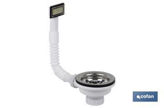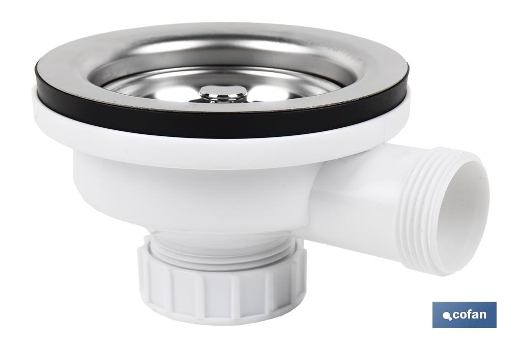 This sink valve 1" 1/2" x 115 has a stainless steel strainer plug and a screw to be installed in stainless steel and synthetic sinks. There are included 2 overflow pipe models: rectangular and round. It is made of high quality polypropylene and has high drainage capacity.
