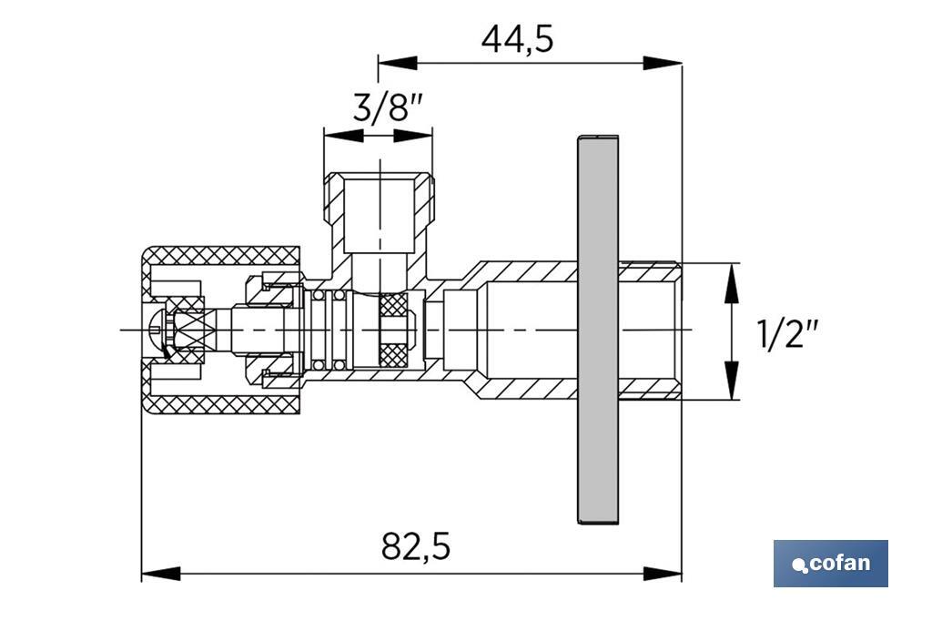 This angle valve 1/2" x 3/8", Pistón Model, is made of brass CW617N. It has a turn angle valve with an adjustable piston, and a PN 16 bar. It has a brass inner stem with EPDM joints for a perfect sealing and a gas inlet thread (BSP).