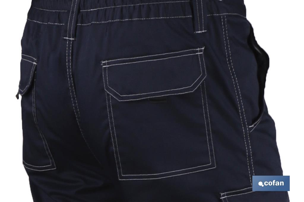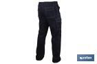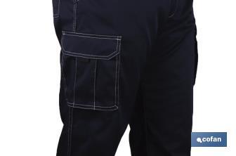 These stretch denim work trousers, Grasberg Model, are a regular fit trousers with double safe seam. They have a central button and zip fastening, and two side pockets which are very useful to store all kinds of tools and objects. Thanks to their composition of 64% of polyester, 34% of cotton and 2% of elastane, and their weight of 240g/m2, these trousers offer comfort, flexibility and lightness. Available in navy blue. Sizes available from 38 to 64 (EU).
