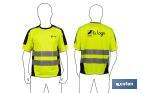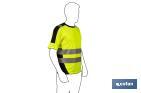 This high visibility T-shirt is yellow and black, and is designed to enhance the worker safety. This technical tee features a short-sleeve, round crew neck and a loose fitting waist. It is made from 100% polyester. Thanks to its highly breathable fabric, it allows you to perform any physical exertion outdoors at high temperatures. In compliance with Standard EN ISO 20471:2013+A1:2016 (class 2). Available with size S, M, L, XL, XXL and XXXL.