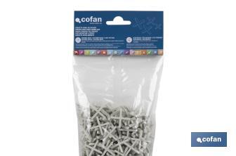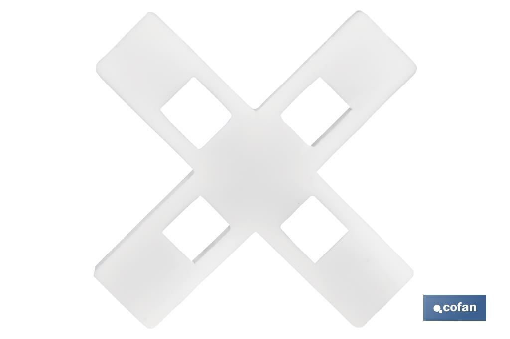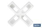 Heavy-duty cross-shaped tile spacers, reinforced and designed to hold up heavy tiles. They are essential to ensure precision and durability in your tiling projects. They are made of high-quality polypropylene (PP). The highly-resistant material of these tile spacers ensures their robustness and prevents them from sticking to the adhesives used, providing a smooth and effective application. In addition, these spacers ensure uniform spacing between tiles, preventing movements during adhesive setting and achieving a polished and precise finish. They ensure a uniform joint to allow a better distribution of the stress to which the tiling is subjected by contributing to the durability of the tiling. This helps prevent cracks and detachment over time. The cross-shaped tile spacers are available in different sizes: 1 mm, 1.5 mm, 2 mm, 2.5 mm, 3 mm, 4 mm, 5 mm, 6 mm, 8 mm and 10 mm, each with different packaging: 300, 250, 150, 100 or 50 pieces, offering a complete and durable solution for projects of any size.