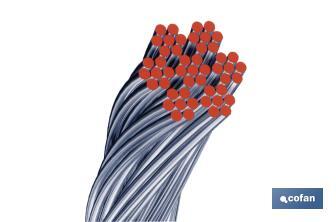 7x7-threads wire rope, with one more central thread, according to D-1570 regulation. With stainless quality AISI-316. Perfect for underwater use, bombs planting and sailing. A-4 Stainless.