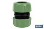 Racor modelo Confort para reparar o empalmar una manguera de riego/jardín. Está fabricado en ABS de gran calidad de color negro y verde. Cuenta con varias medidas según el diámetro que tenga la manguera. Buena resistencia UV proporcionando una larga vida útil al racor. Es muy rápido y fácil de instalar. Muy resistente a los impactos, su material es sólido y muy duradero.