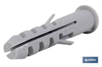 Taco de nylon alado con collarín | Medidas desde diámetro 4 hasta 14 mm | Para todos los materiales de construcción