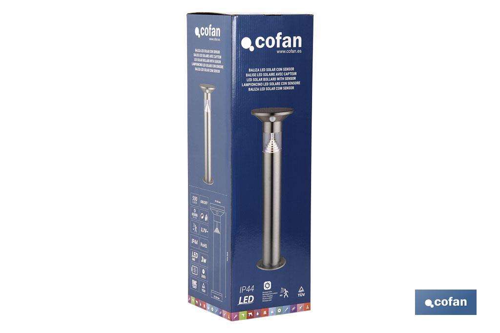 Baliza Led solar con sensor Gris/Negro 3W IP44 500 Lum. Ideal para exteriores, jardines, terrazas...Incluye sistema de sensor de movimiento para encendido y apagado de luces.