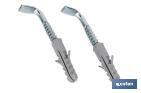 Set de 2 piezas de taco nylon con alcayata para termo y calentador. Estos anclajes se utilizan para la fijación de termos y calentadores, permitiendo una instalación rápida y sencilla. Son aptos para una gran variedad de materiales, tanto huecos como macizos: hormigón, hormigón ligero, bloque hueco de hormigón, piedra natural, ladrillo macizo, ladrillo hueco y madera. Versión de taco con alcayata. Los elementos metálicos, de nylon y goma poseen una elevada resistencia a agentes químicos y a condiciones húmedas. Hay dos medidas de diámetro de Ø 8 y Ø 10 mm y dos longitudes correspondientes: 65 y 75 mm.