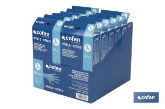 Caja dispensadora de 30 guantes de nitrilo sin polvo. Su colocación es ambidiestra y se caracterizan por ser de un solo uso. Son perfectos para manipulación de alimentos (son válidos para uso alimentario), tareas de limpieza, servicios de mantenimiento, limpieza de piezas, etc. Ideales para mantener la limpieza en procesos donde sea sumamente importante una higiene adecuada. No contienen polvo. Se adaptan y acomodan a la mano de manera rápida y sencilla. No molestan ni generan roces molestos y dañinos para la piel. Protegen la piel de sustancias, objetos peligrosos, líquidos, gases y otros elementos a tener en cuenta a la hora de exponerlos al contacto con la piel. El embalaje actúa como propio dispensador de los guantes, por lo que ahorrará espacio y proporcionará comodidad. Tallas disponibles: L, M y S.