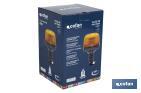 Luz led estacionaria destellante clase 1 de color naranja para soporte flexible y para conexión fija y desmontable. Esta luz tiene tres modos de iluminación: flash, flash doble y rotación, para satisfacer diferentes necesidades. Luz con 16 leds de 3 W de alta potencia en 20 watios con posibilidad de uso en 12 (coches y tractores) o 24 voltios (camiones y buses). La luz estacionaria naranja está equipada con conexión de alto rendimiento, debe colocarse en la parte alta del vehículo. Las luces intermitentes clase 1 tienen un papel de advertencia para avisar para reducir accidentes, como también la señalización de vehículos especiales en carreteras. Es adecuada para señalización en el techo de vehículos, camiones de bomberos, máquinas urbanas, barredoras, camiones, etc. Cuenta con protección IP66 y con homologación ECE R65, ECE R10, CE y RoHs (ECE R10 N.º: E9* 10R06/02*23684*00 y ECE R65 N.º: E9*65R00/11 *6973*00). La carcasa está hecha de material ABS duradero y es cristalina para aportar un brillo intenso. Medidas de 201 mm de altura total y 126 mm de ancho.