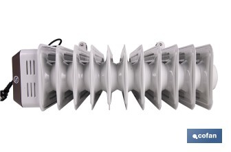 Radiador de aceite blanco de alta eficiencia diseñado para proporcionar un calor acogedor en estancias de hasta 25 metros cuadrados. Equipado con tres ajustes de energía (850 W, 1650 W y 2500 W), este radiador te permite optimizar el consumo energético según tus necesidades. Sus 11 elementos de calor y termostato regulable aseguran una distribución uniforme del calor, manteniendo tu hogar confortable en todo momento. Con este radiador la seguridad es una prioridad, ya que cuenta con un termostato KSD automático de seguridad antiincendios y un dispositivo de control antivuelco y sobrecalentamiento, proporcionando tranquilidad a tu hogar. Además, incluye una luz indicadora de funcionamiento para que sepas cuándo está en uso. El radiador es fácil de mover gracias a sus cuatro ruedas giratorias y el asa de transporte integrada. También dispone de un práctico soporte para el cable de alimentación. Diseñado para funcionar con una tensión de 220-240 V y una frecuencia de 50/60 Hz, este radiador ofrece una potencia ajustable de 850 W, 1650 W y 2500 W. Con unas medidas de 53 x 24 x 65 cm y clase de protección I, es una opción fiable y eficiente para mantener tu hogar cálido y acogedor durante los meses fríos.