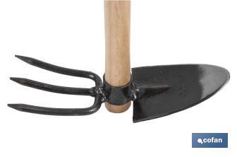 Zacho curvo de acero endurecido | Con mango de madera | Disponible con 1 o 3 puntas | Medidas: 21 x 8 cm