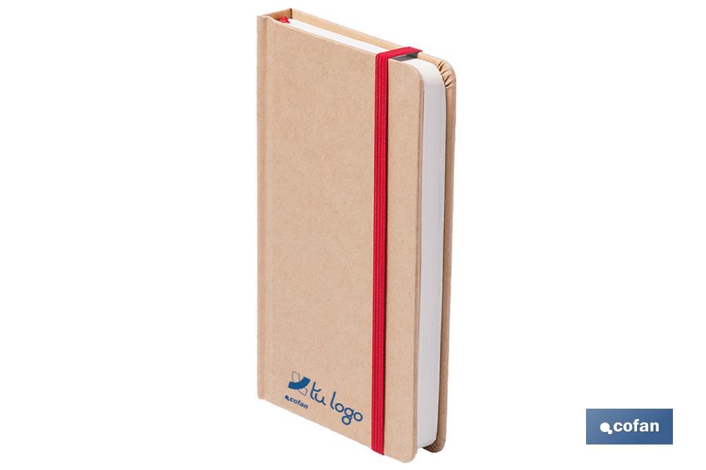 Bloc de notas con tapa, páginas blancas. Incluye marcapáginas. Detalle en varios colores a elegir. Cantidad mínima 100 unidades.