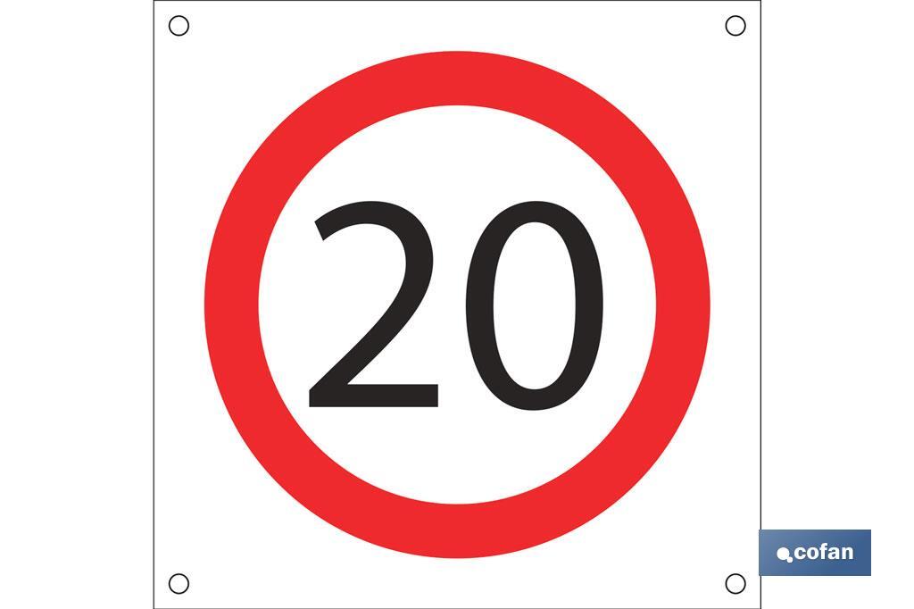 Señal Polipropileno Celular 600x600mm "Velocidad máxima 20kmh". El diseño de la señal puede variar, pero en ningún caso se variará el significado de la misma.