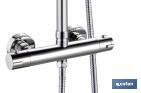 Coluna de duche redonda com 5 funções de hidroterapia. Inclui: chuveiro com 5 funções, mangueira extensível em inox, haste telescópica, cabeça de chuveiro e torneira termostática para regular a temperatura da água. Com uma economia de até 40% de água. Feito de material ABS cromado. Torneira termostática de latão cromado. Este sistema de coluna de chuveiro é muito fácil de montar e instalar em sua casa .